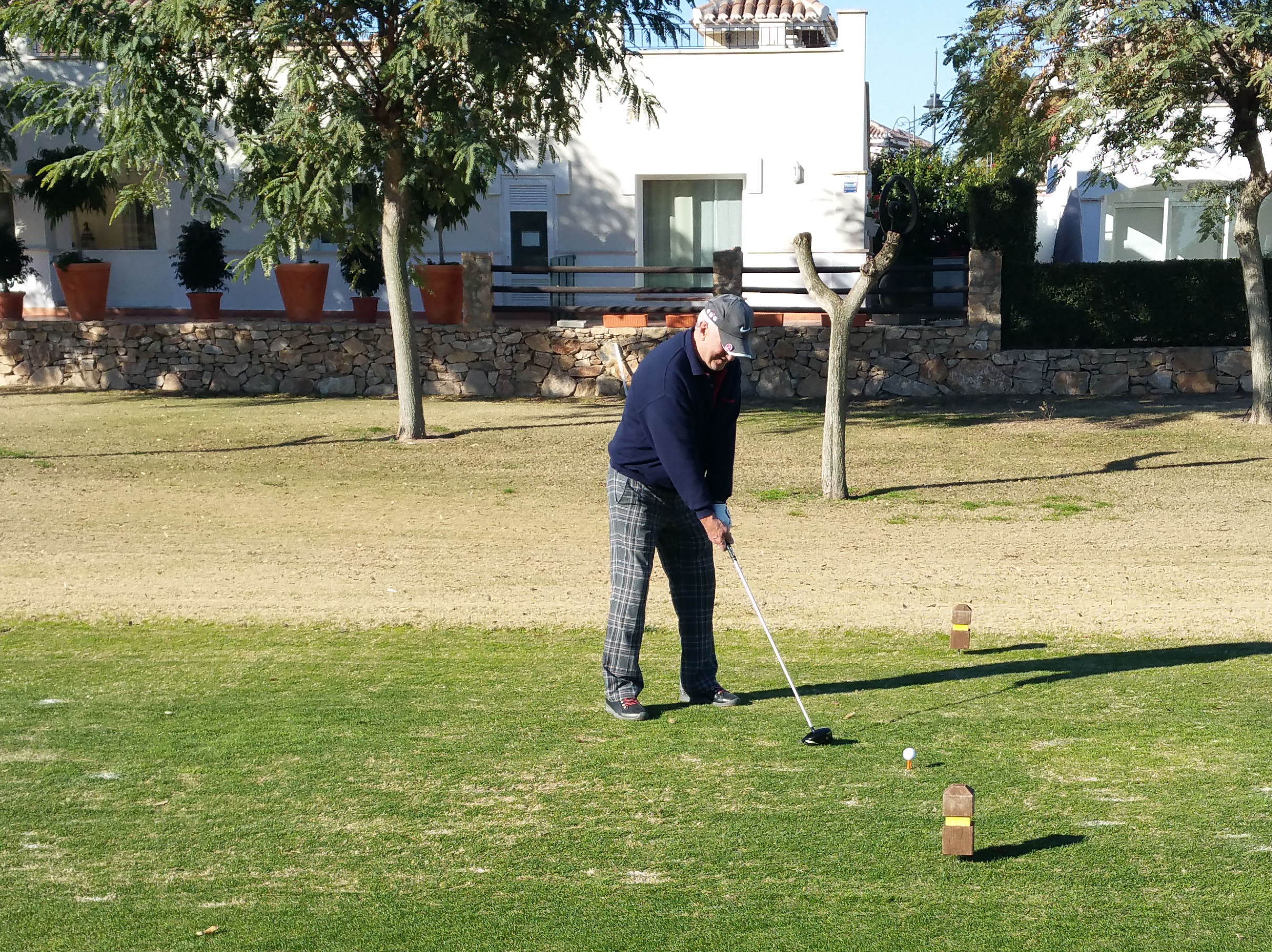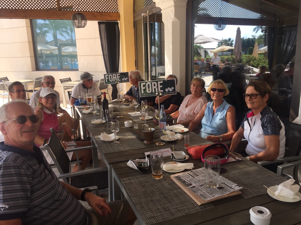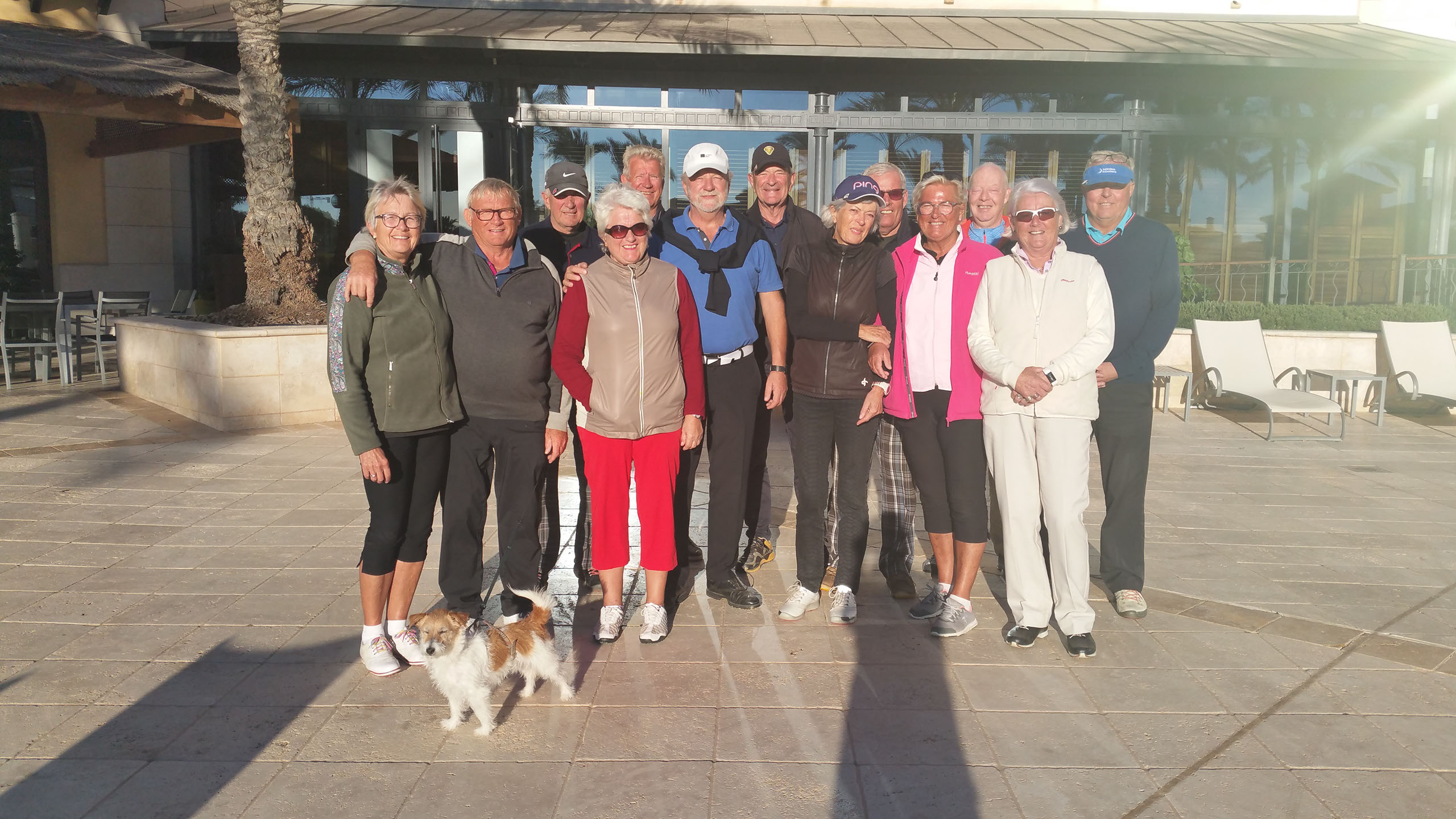 Opp mot 230 år benket på hull 8. Helse i hvert slag. Fra venstre: Pelle, Johan- Ludvik og Erik Just-Olsen. Tar vi med fotografen har vi 300 år i flighten. Foto: Geir Engelsen.